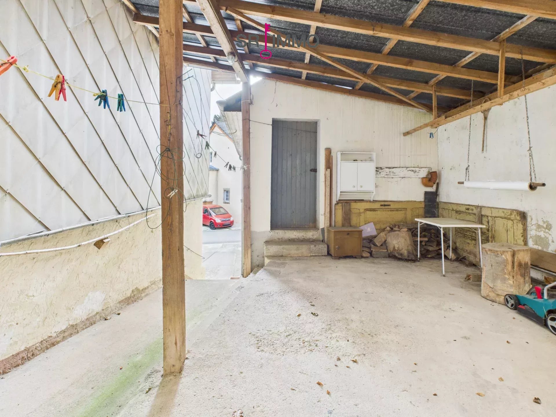 Im Innenhof stehen zwei PKW-Stellplätze zur Verfügung. Hinter dem Wohnhaus befindet sich eine kleine Wiese mit einem ehemaligen Hühnerstall – ideal für Kleintierhaltung oder als naturnaher Garten nutzbar.