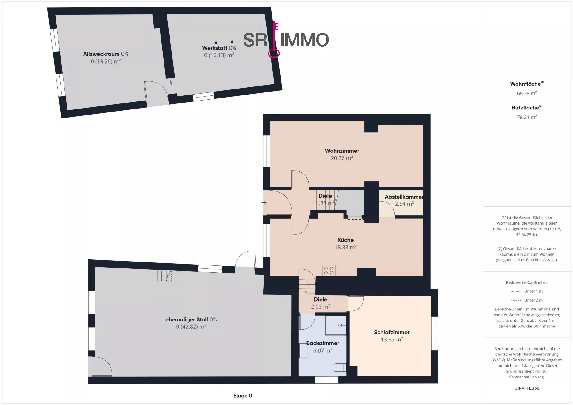 Die gesamte Nutzfläche beider Nebengebäude beträgt ca. 269 m².